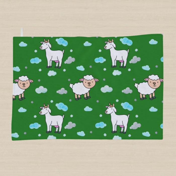 Tea Towel - Goat and Sheep Green